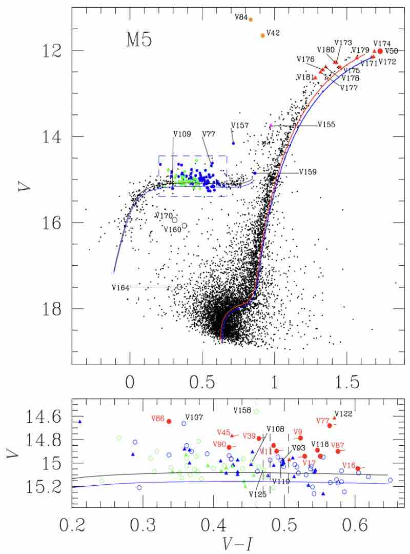 Globular clusters are amongst the oldest structures in the Galaxy. They are composed of millions of stars with a spherical distribution. In a study we made of the Globular cluster M5, we found several new variable stars, and study the population of RR Lyrae stars in it. RR Lyrae stars are old (>10 Gyr) and pulsate radially, furthermore, they can be used to measure distances. By a comparison of the expected time of their maximum brightness and the measured one, it is possible to know if the RR Lyrae star is increasing or decreasing its pulsation period. In that way, one can infer the evolution stage in which the RR Lyrae is.